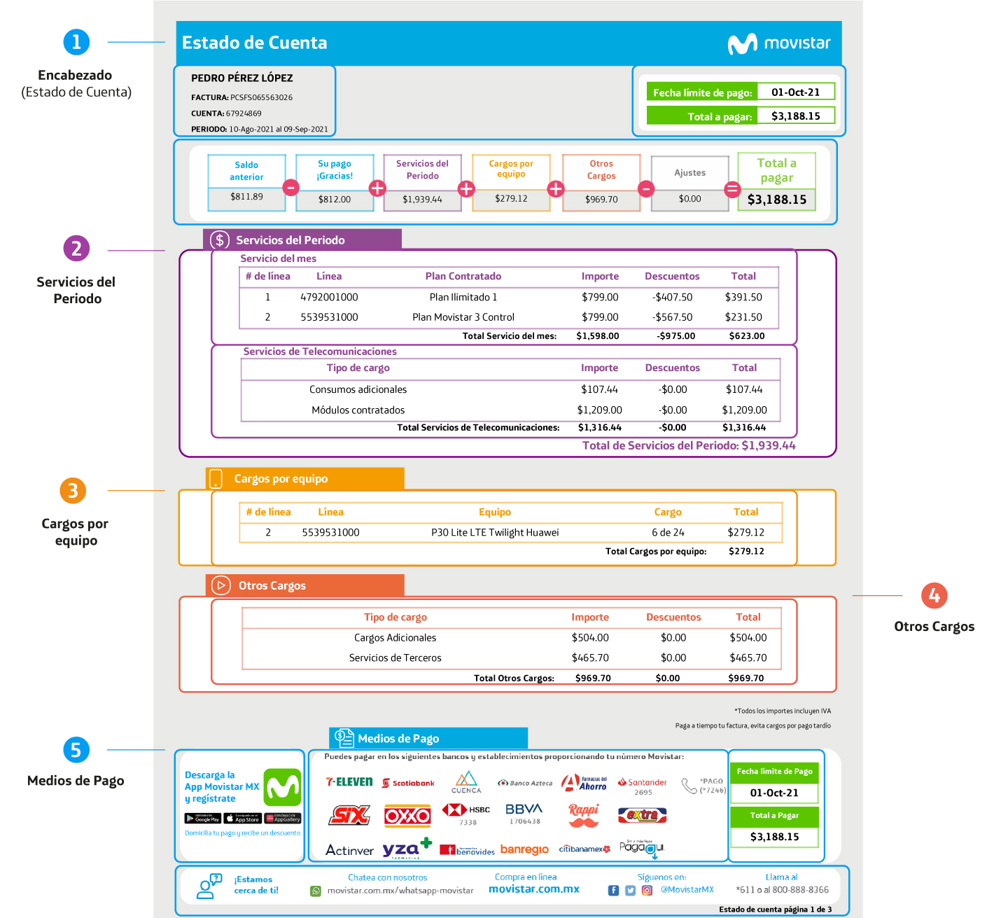 Conoce de forma sencilla cómo se conforma tu Estado de Cuenta y Factura Movistar.