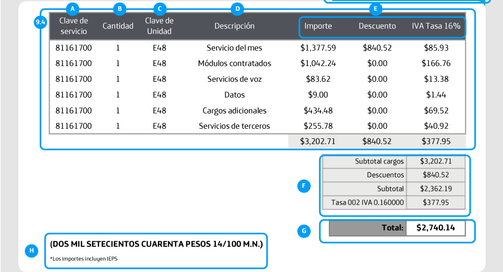 Es el costo que pagarás mensualmente por tu servicio de voz, sms y datos (Llamadas, Mensajes, MB y Redes Sociales). Las cantidades y monto puede variar de acuerdo con tu Plan.
