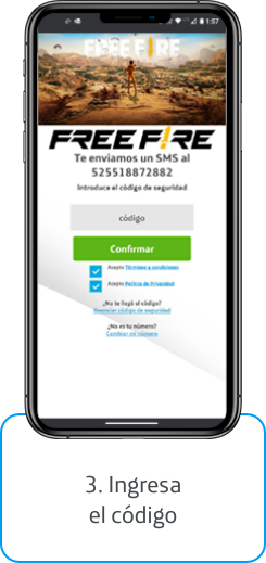 Solo haz una recarga desde $50 pesos y recibirás un SMS con la liga para reclamar tu código, a través de sdigital.movistar.com.mx/garena Al final de este proceso, recibirás otro SMS con tu código de 12 caracteres y tendrás que canjearlo en el sitio de Free Fire en reward.ff.garena.com/es